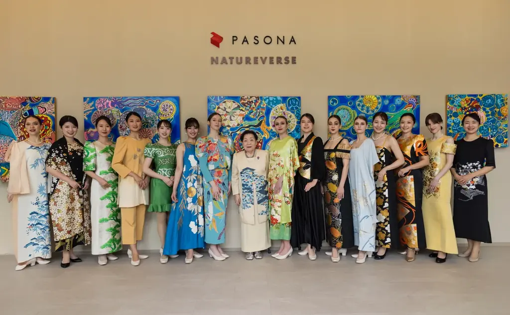 ショーでは、藤本氏が手掛けたパビリオン「PASONA NATUREVERSE」用のVIPアテンダントオートクチュールドレスをランウェイにて披露します。素材には日本伝統の着物地や帯地が用いられ、「いのち」を吹き込むという表現を通じて伝統と現代の融合を示す内容です。
