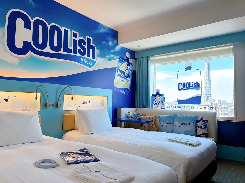 このコラボレーションは、クーリッシュの可能性を拡げるプロジェクト「STAY HUNGRY , STAY COOLISH」のコンセプトに共感したホテル側が企画したもので、館内や客室にクーリッシュデザインを施した特別空間を提供する取り組みです。客室からは東京スカイツリー®を眺められるロケーションを活かし、「窓からの眺めと共に味わうクーリッシュ」をテーマに設計されています。