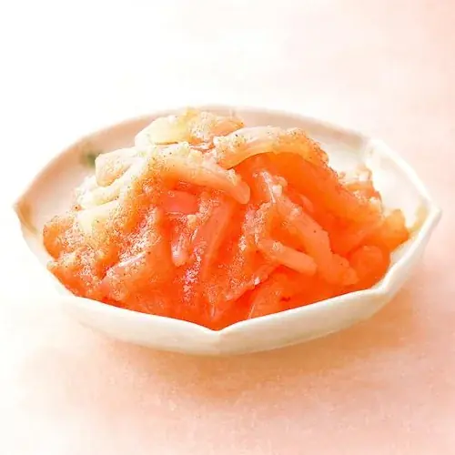 - 家庭用明太子 340g:会員価格2,484円(税込)、一般価格3,132円(税込)。切れ子や形が不揃いなものを使用しているが、味は同等で容量面ではお得な商品。