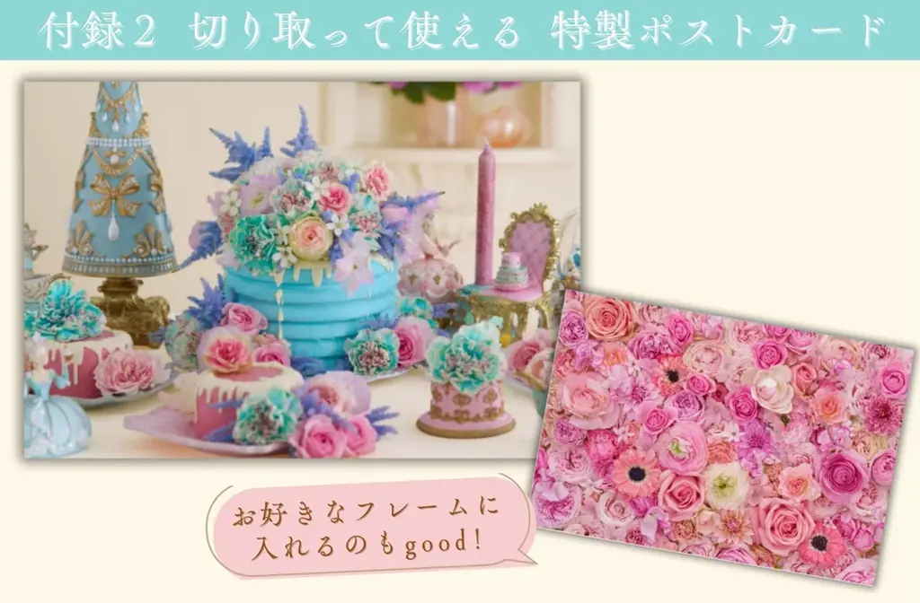 本商品には卓上で使えるミニカレンダー(紙製スタンド付き)と、切り取って使用できるポストカードが2枚付属します。付録はデスクや小さなスペースでもラッキーフラワーを目にする機会を増やすための工夫です。