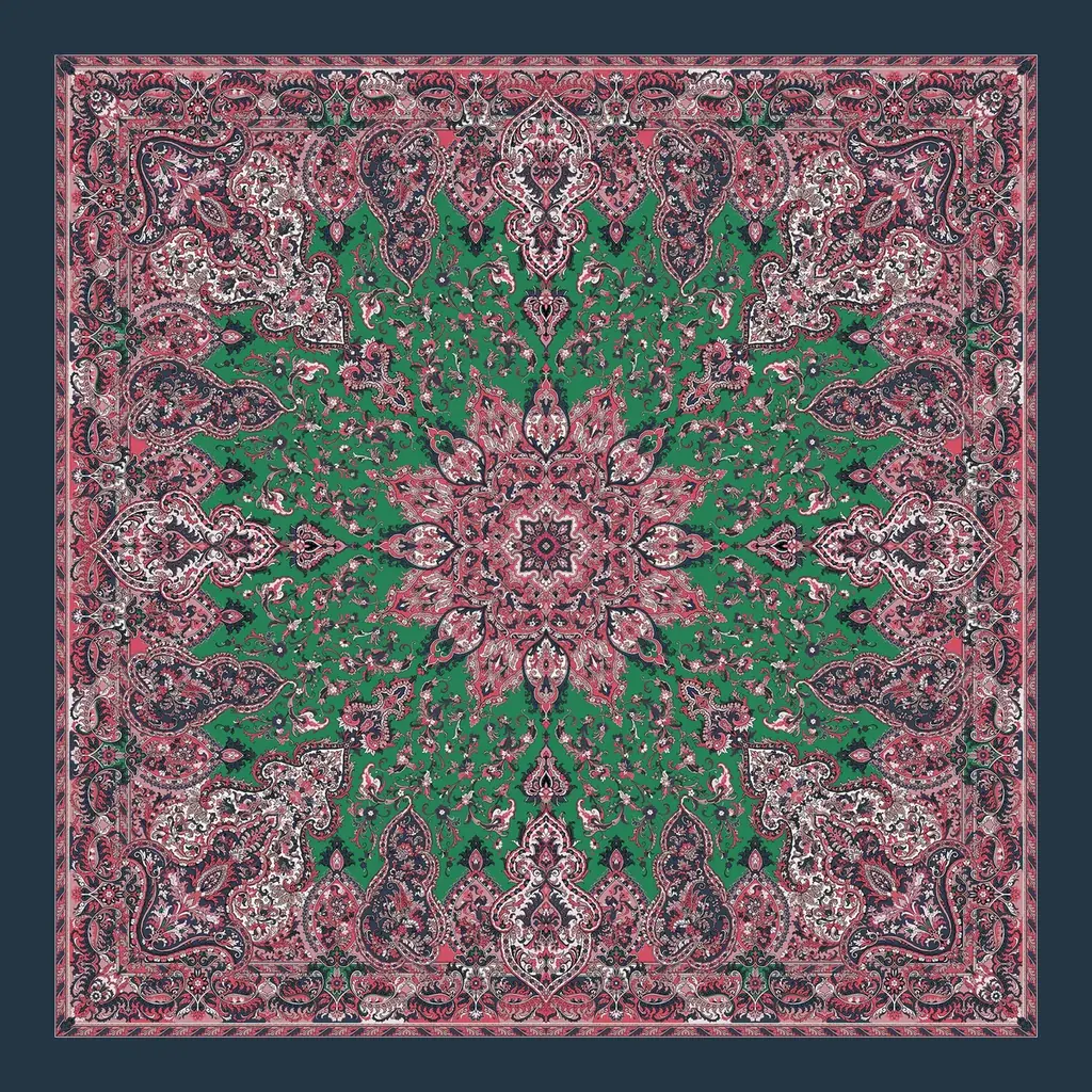 | 特徴 | 140cm四方の大判スカーフ由来のペイズリープリント、ネイビーフレーム、手作業による慎重な裁断 |
