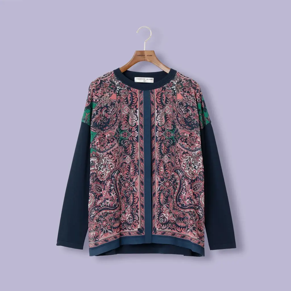 前身頃にペイズリープリントを配したニットは、一枚で華やかさと上品さを兼ね備える。ニット ¥64,900(税込)商品コード:PRFAE02590。 - 華やぐ大人カジュアル