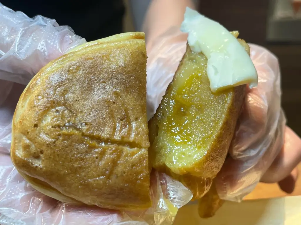 - 背徳!バター紅はるか餡ピラニア焼き:カフェクラム(10F チケットカウンター横)で販売。価格 650円(税込)。紅はるか芋の餡とバターの組合せが特徴。