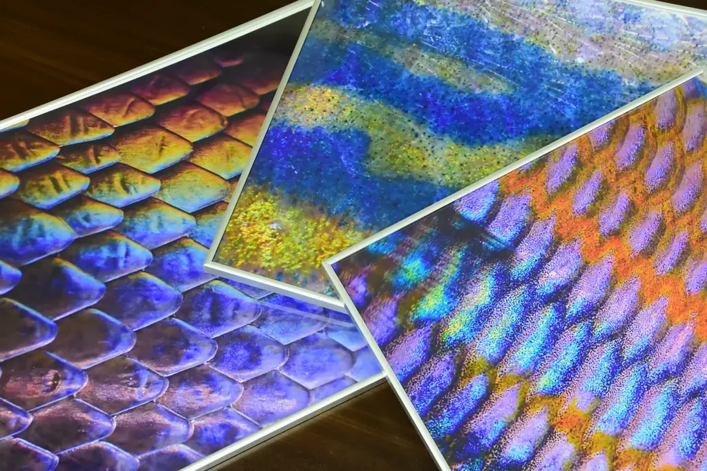 アグア・ラボでは、生きものの鱗や羽根など「自然がつくる色彩」に焦点を当てた大型パネル展示を実施します。色の成り立ちや機能を解説するとともに、箱メガネを使って水槽内の色の見え方を観察できる仕組みも用意されています。パネル写真を使用した缶バッチも販売されます。