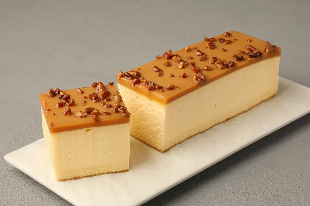 価格:¥1,950(税込)。「幻のチーズケーキ」と、世界パティスリー2009アントルメ部門優勝ケーキ「ガイア」を融合させた欲張りな一品です。クリオロ自慢の丁寧に煮詰めたキャラメルをチーズケーキ上に重ね、コクとまろやかさを付与。ゲランドの塩をアクセントに加え、トッピングにはキャラメリゼしたピーカンナッツを散らして食感の対比も加えています。