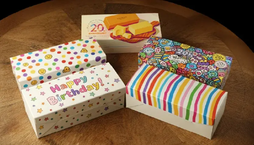 パッケージは20周年仕様の特別な桐箱での提供を予定しています。販売店舗は本店、中目黒店、麻布台ヒルズ店、公式オンラインショップ、楽天ショップ、Yahooショップ、LINEギフトショップです。販売期間は2025年10月1日~11月30日(予定)です。