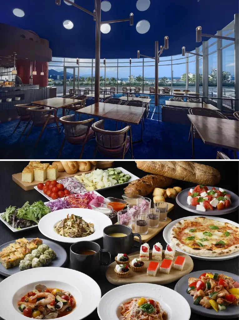 「イタリアンダイニング ベルラーゴ」は“美味しいイタリア料理を出来立てで”をコンセプトに、ピザ窯で焼き上げる本格ピッツァや彩り豊かな前菜、温菜をビュッフェ形式で提供します。滋賀県産食材を活用した品も複数含まれ、老若男女問わず楽しめる内容です。