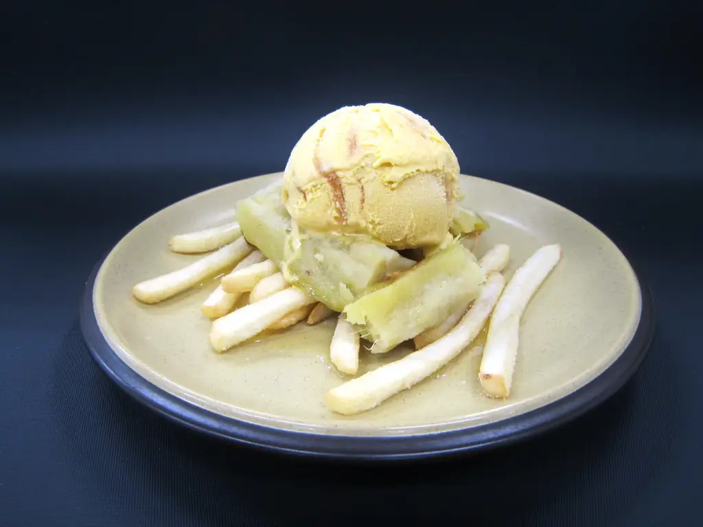 お食事処「華こぶし」では、五霞町産のさつまいもを使ったローディット焼き芋が提供されます。焼き芋は素材の甘みを活かす調理法で、地元産のさつまいもが持つ糖度や食感を前面に出したメニューです。