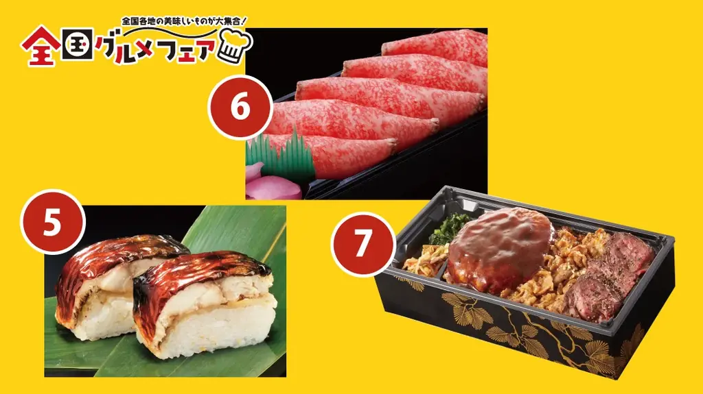 「全国グルメフェア」では、海鮮弁当、惣菜、銘菓、地域色の強い加工食品など、全国各地から集まった多彩な味覚を紹介します。出店には福岡、長崎、東京、静岡、三重、佐賀など各地の名店や専門店が参加します。