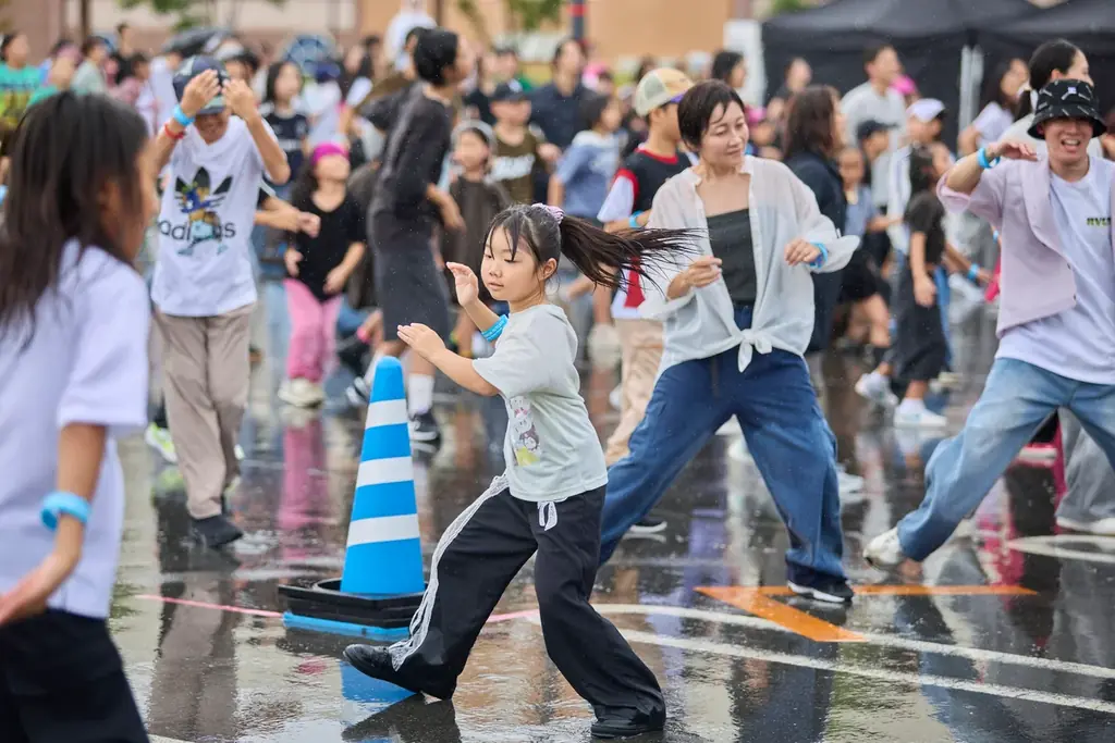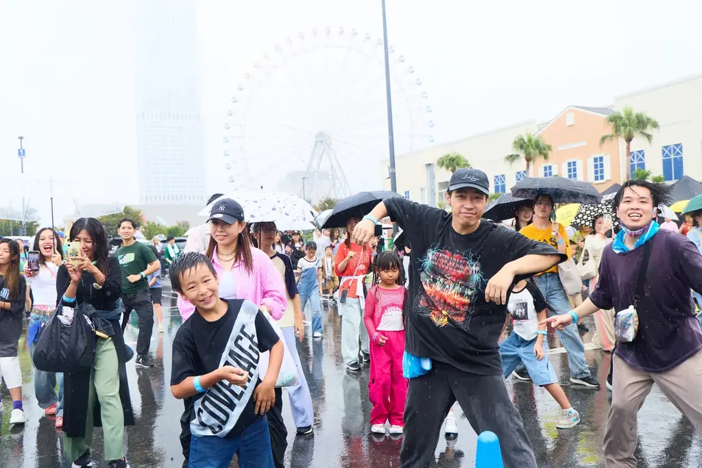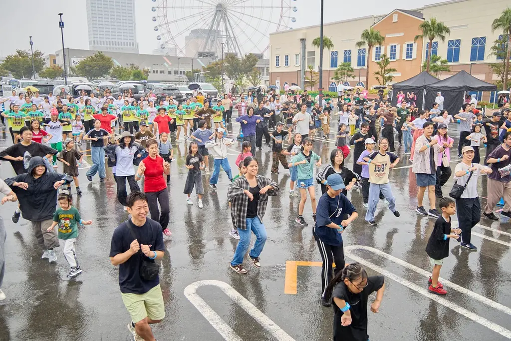 当日は開始から徐々に天候が悪化し、時折激しい土砂降りとなったものの、参加者は雨の中でも最後までレッスンと一斉ダンスを完遂しました。会場では安全面の配慮やケガ防止のための準備運動、公式認定員からのルール説明が行われ、参加者の真剣かつ協力的な姿勢が結果につながりました。