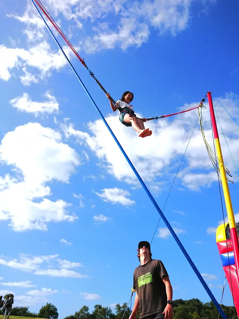芝生広場を中心に、バンジートランポリンやカヤック、ラジコンカート、大型スライダーといった身体を使ったアクティビティが用意されています。飛竜池に隣接したエリアではカヤック体験が可能で、水上での体験を通じて自然との距離を近づけることができます。