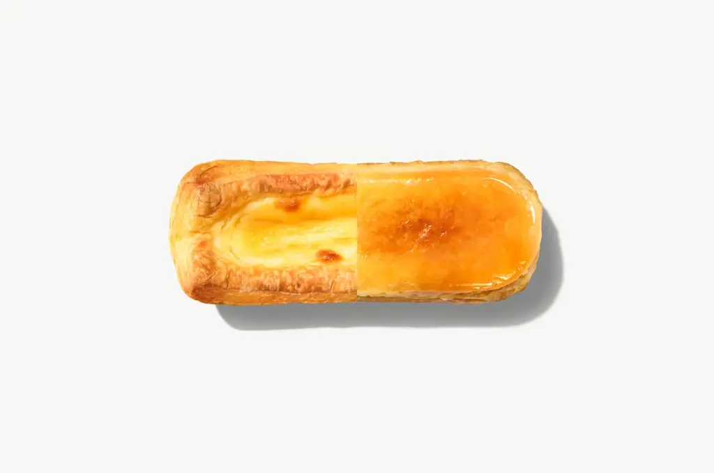 - クリームチーズを使用したチーズケーキ生地をしぼったデニッシュの底に、発酵バター風味のあめを敷いて焼き上げたもの。