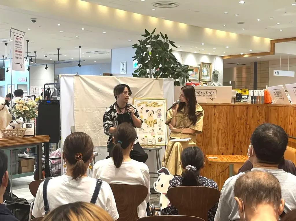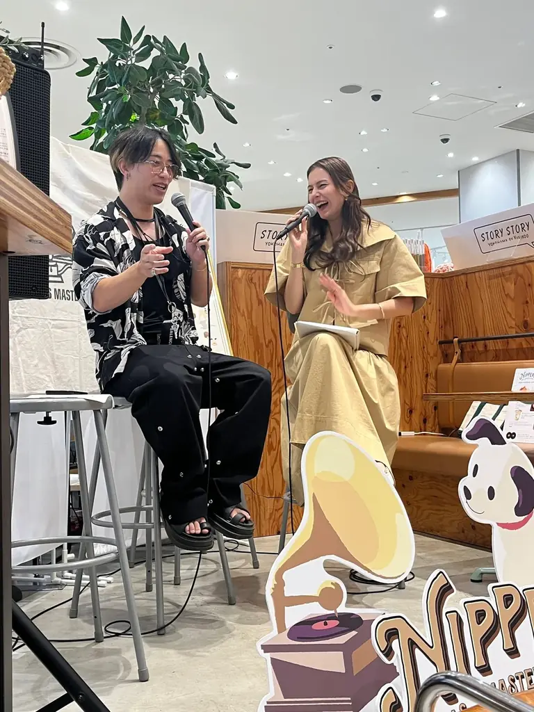公開収録は、ビクターエンタテインメントとJ-WAVE(81.3FM)が共同で配信するポッドキャスト「どうぶつとのちょっとイイ話 ~アナザー・ニッパー・ストーリー~」の番組初の公開収録で、2025年9月27日(土)にSTORY STORY YOKOHAMA店内のカフェスペースで行われました。リスナーの中から事前当選した参加者が会場を訪れ、ニッパーコラボカフェドリンクを片手にイベントを観覧しました。