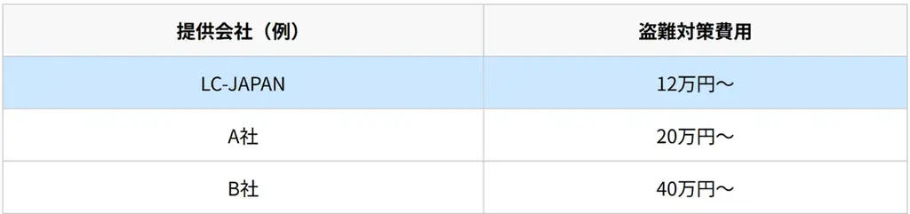 | 導入費用(LCプロテクター) | 12万円~(施工費含む目安) |