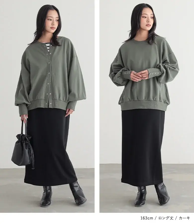 着丈に関しては「ショート丈」と「ロング丈」を想定した説明がプレスリリース本文に記載されています。ショート丈はコンパクトに見せたい方やワンピースとのレイヤードに適し、ロング丈はヒップ周りをゆったり隠したい場合やゆるっとしたラフな雰囲気を出したい場合に向くとされています。
