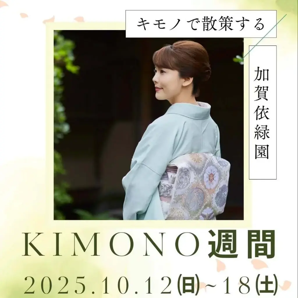 加賀依緑園では、2025年10月に二つの来場者向け企画を実施します。ひとつは和装での来館者を対象とした「KIMONO週間」、もうひとつは10月19日に実施される石川県在住者向けの入館料無料デーです。それぞれ利用条件や実施日が明確に定められています。