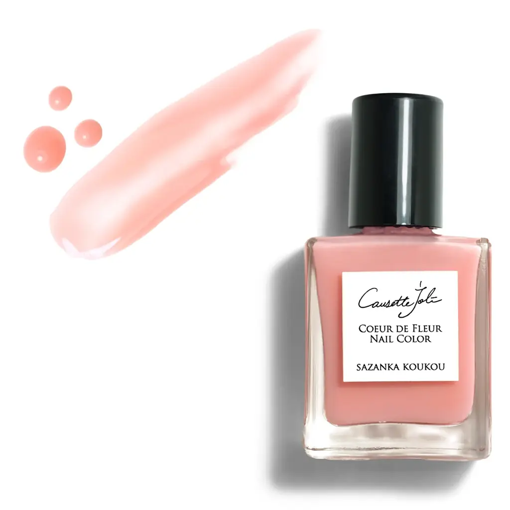 製品は「Coeur de Fleur Nail Color」として3色展開、内容量は各10mL、価格は1本あたり¥1,980(税込)で、製造は日本(Made in Japan)です。パッケージや香り、使用感にも配慮した設計で、成分の80%以上が植物由来となっています。