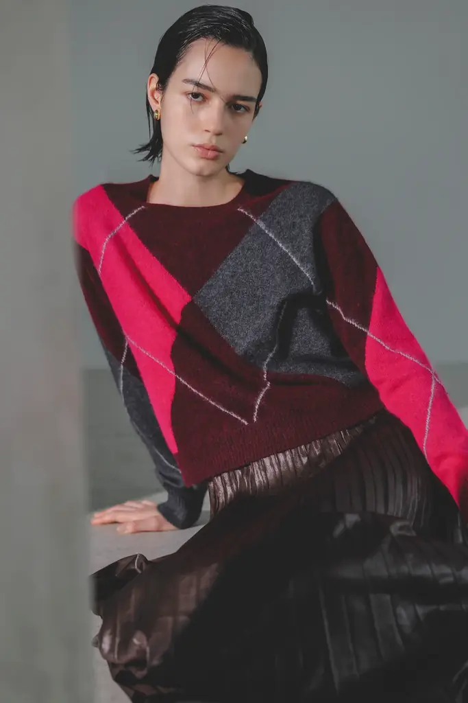 ロートレアモンは10月のテーマを「Wrapped in Grace」とし、柔らかなファーやヘアリーニット、クラシックなアーガイル柄やレザー調プリーツといった素材コントラストの効いた上品なスタイリングを提案しています。今季はブラウンカラーを冬素材に取り入れたコーディネートが中心です。