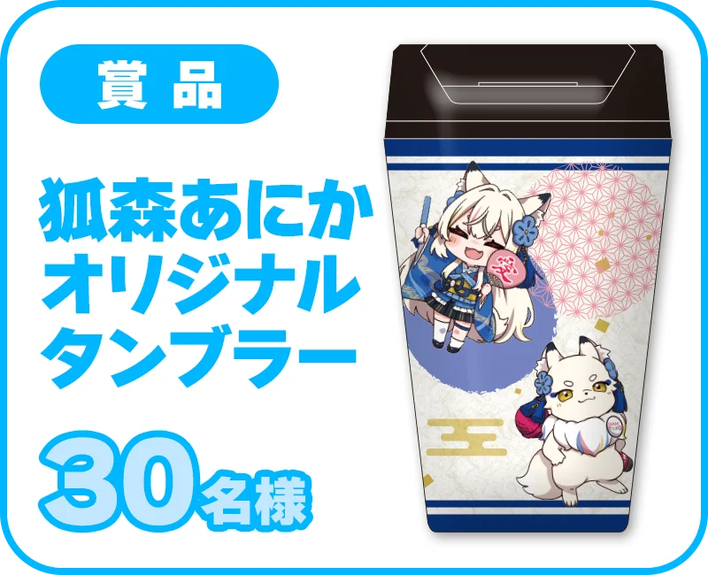 | 賞品 | DAMアニメ部「狐森あにか」オリジナルタンブラー 30名様 |