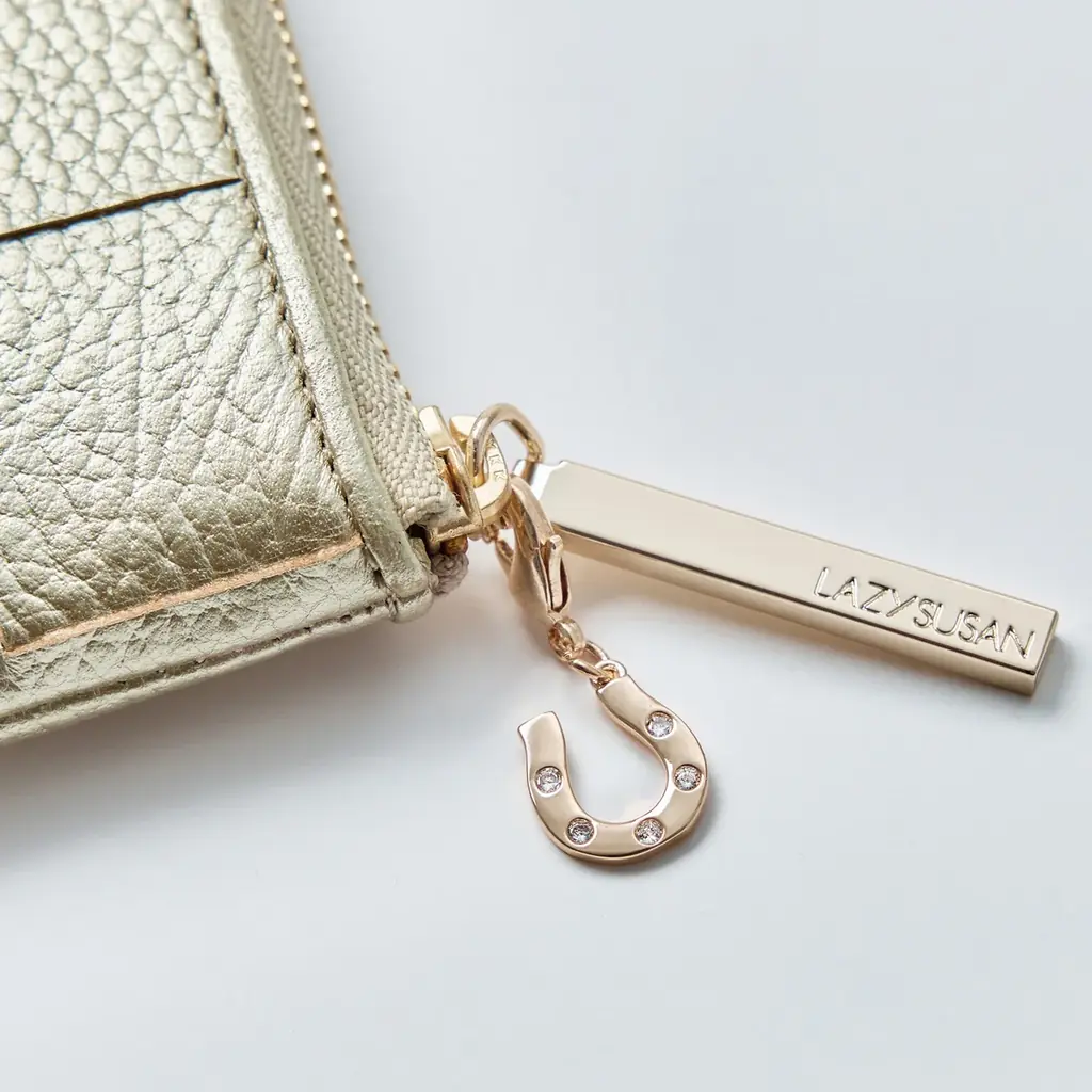- 馬蹄チャーム:勝利と幸運を象徴する馬蹄をチャームとして付属。向きによる意味(U字上向き=幸運を受け止める、下向き=幸運が降り注ぐ)もデザインに反映されています。