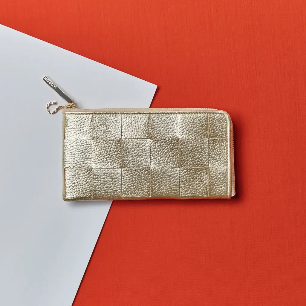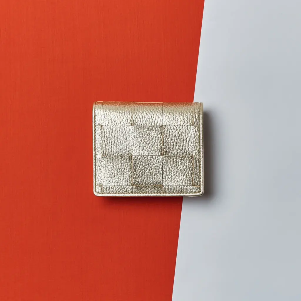 財布はデザイン性と実用性を重視して製作されています。イントレチャートによる網目模様は金運の安定感を象徴し、朱赤に近いヴァーミリオンの裏地は生命力や守護の意味を持たせています。馬蹄チャームは勝利と幸運の象徴としてデザインに取り入れられています。