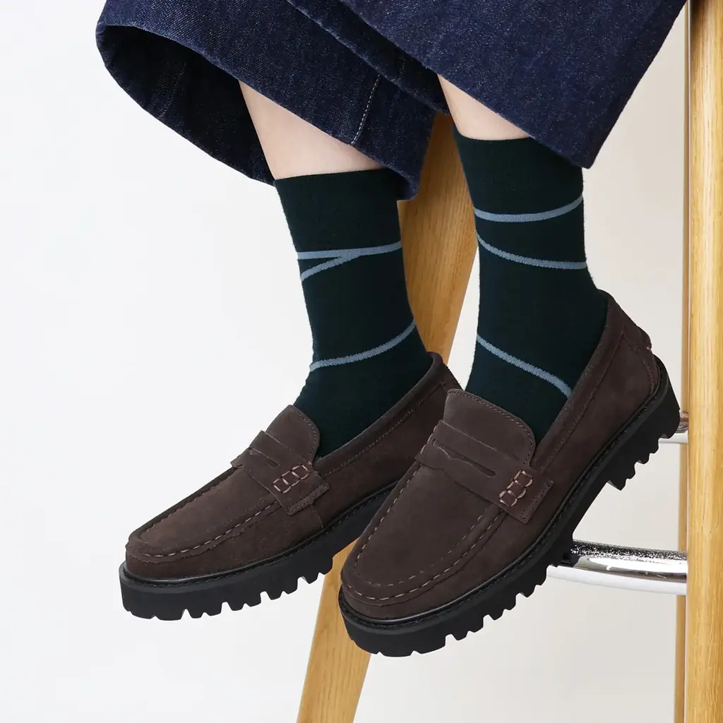 • 左右反転:左右のソックスでデザインを反転させ、履き方や角度により表情が変わる工夫