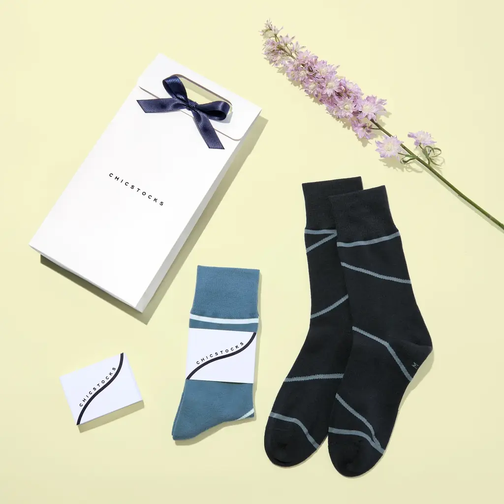 CHICSTOCKS公式サイトでは、ソックス2足をセットにしたギフトセットも同時に発売します。セット価格は4,840円(税込)で、持ち手付きのギフトバックが付属し持ち運びに適した仕様です。