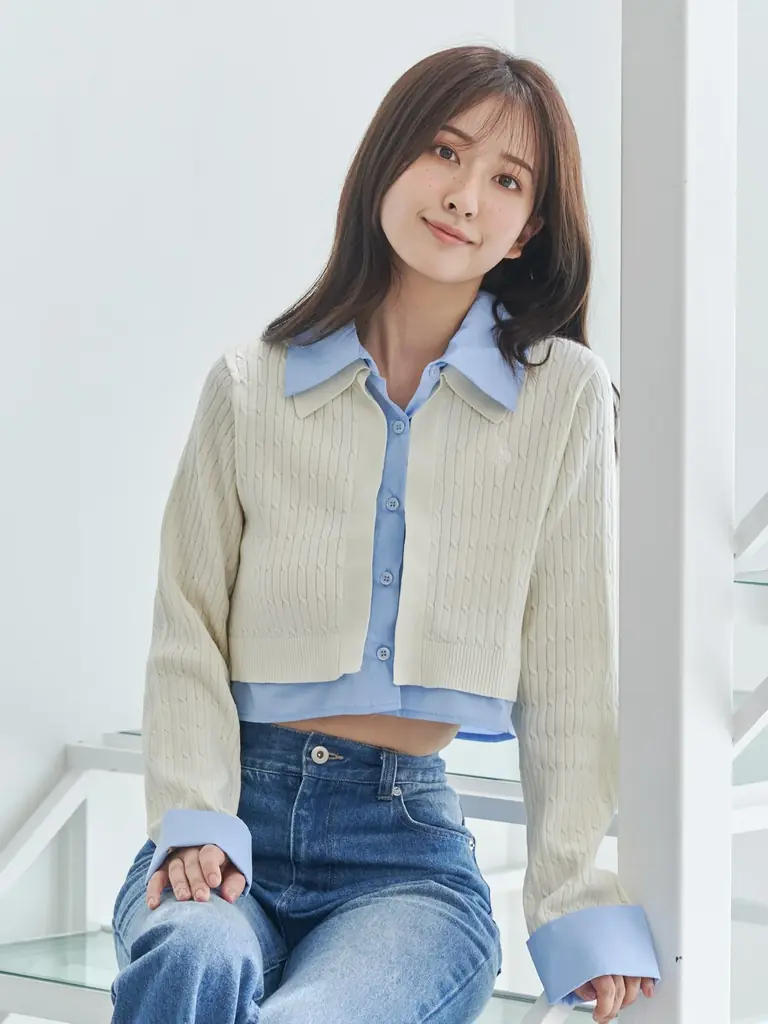 U.S. POLO ASSN.別注コラボシャツレイヤード風ケーブルカーディガン