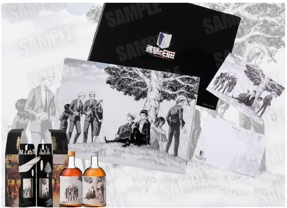 このセットの最大の特徴は、諫山創氏による完全描き下ろしの原画ラベルと、原作シーンをコラージュした特製化粧箱です。諫山氏が構想して描いた原画は、大人になった主人公たちが象徴的な木の下に再び集う情景を描いたもので、原作に描かれていない“その先の物語”を想起させる静かで力強い一枚とされています。