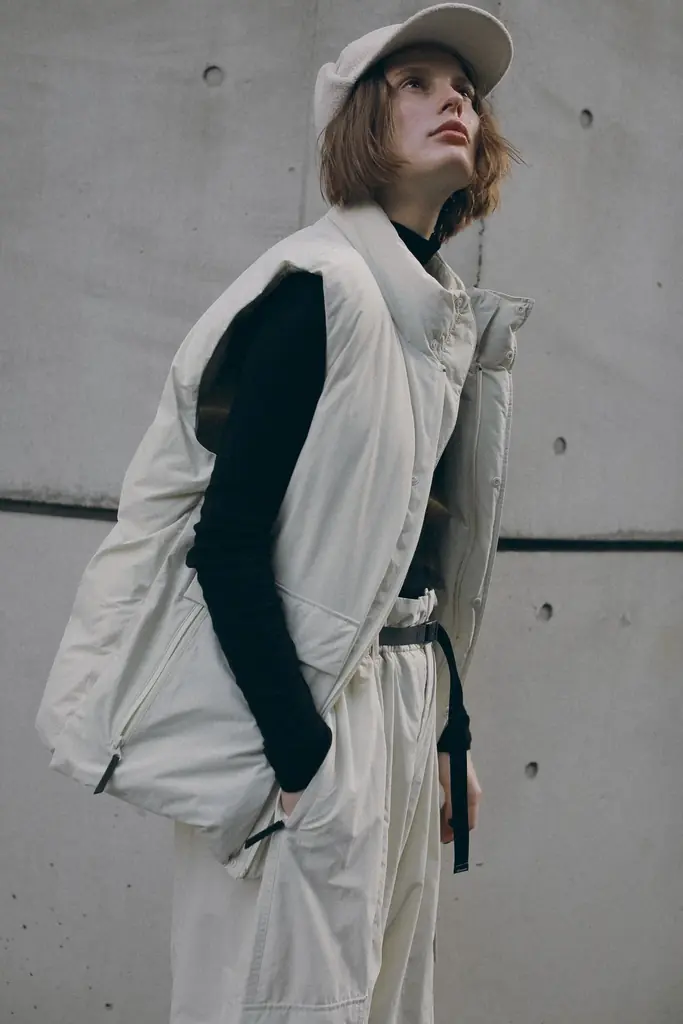 程よいボリューム感で設計されたダウンベストは、分厚すぎずすっきりとした着用感を実現するためのフォルムにこだわっています。アウトドア感を軽減するバランス設計により、街着としても自然に馴染む一着です。