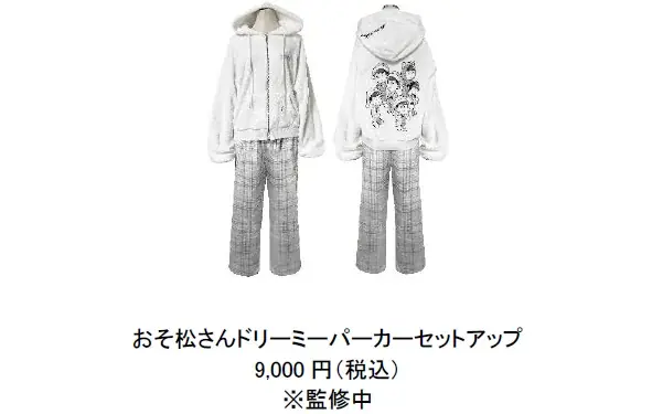 ふわふわの肌触りにこだわったセットアップを提供。バックにプリントされたおそ松さんのデザインが特徴で、癒しと可愛さを兼ね備えたアイテムをラインナップ。