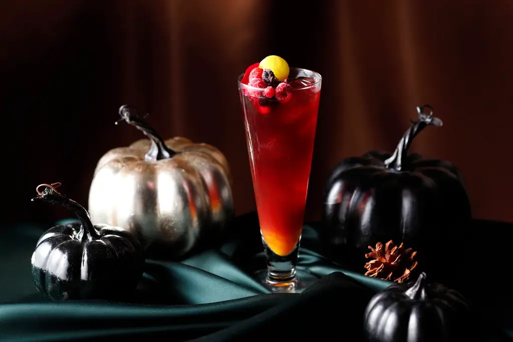 最上階に位置するビュッフェ&バー「VIEW & DINING THE SKY」では、昼は富士山、夜は都心の夜景を背景に、ノンアルコール赤ワインや100%ぶどうジュースをベースにした大人向けのハロウィンカクテルを提供します。お酒を飲まない方でも楽しめる味わい設計で、夜景と調和するビジュアルにも配慮されています。