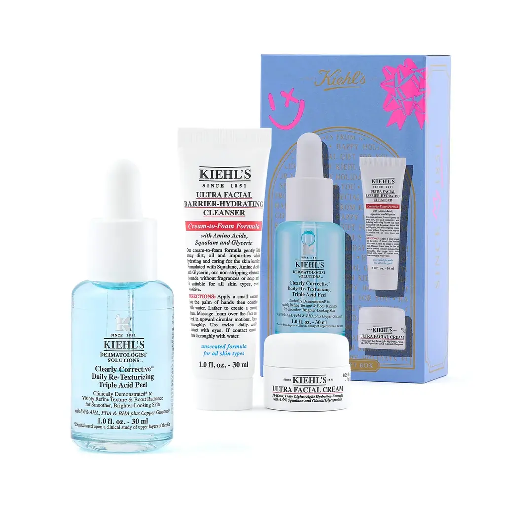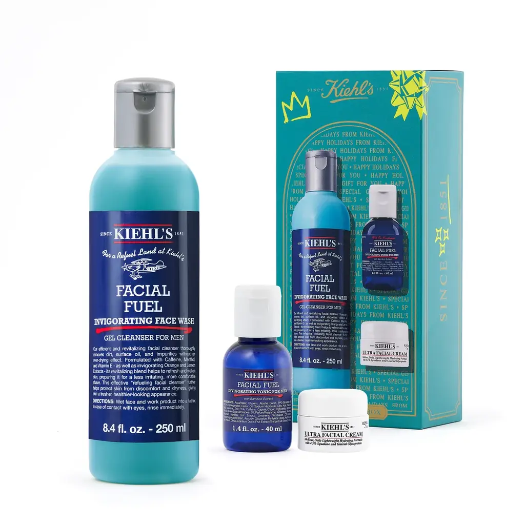 キールズ初のメンズ向けホリデーギフトセット。洗顔、化粧水、保湿クリームの基本ルーティンが揃う構成で、男性のスキンケア導入にも向きます。