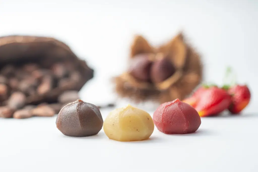 燦マロン餅は栗あんを風味豊かに炊き上げ、やわらかなお餅で包んでいる。燦いちご餅は苺の酸味を活かしたあんで粟餅を包み、燦チョコ餅はチョコあんと餅の調和を目指した濃厚な和スイーツである。パッケージは手描きの線と色彩で太陽の恵みを表現しており、贈答用にも適しているデザインとなっている。