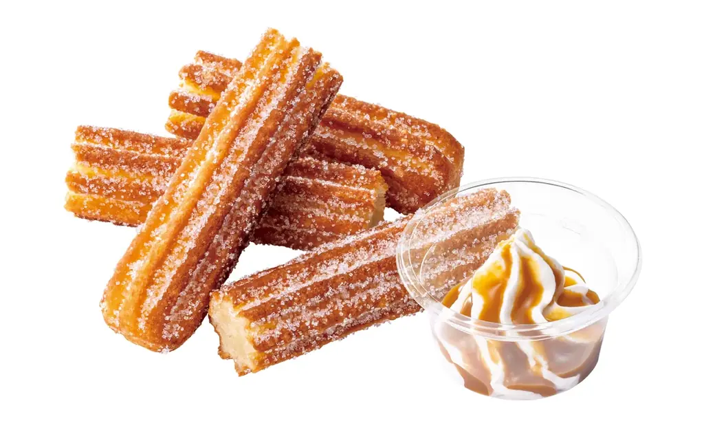 サクッとした外側ともちもちとした食感を持つチュロを、ホイップクリームにかけた塩キャラメルソースにディップして楽しむ商品です。ホイップクリームにも塩キャラメルソースを合わせているため、ディップするたびに濃厚な塩キャラメルの風味が加わります。
