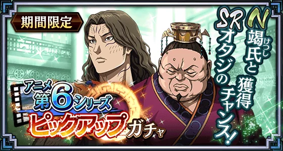 アニメ「キングダム」第6シリーズの放送開始に合わせ、『キンラン』でも連動キャンペーンを実施中です。第6シリーズで新たに登場する武将がゲーム内に続々参戦する予定で、ゲーム内でのイベントやガチャ、特別パックが複数用意されています。
