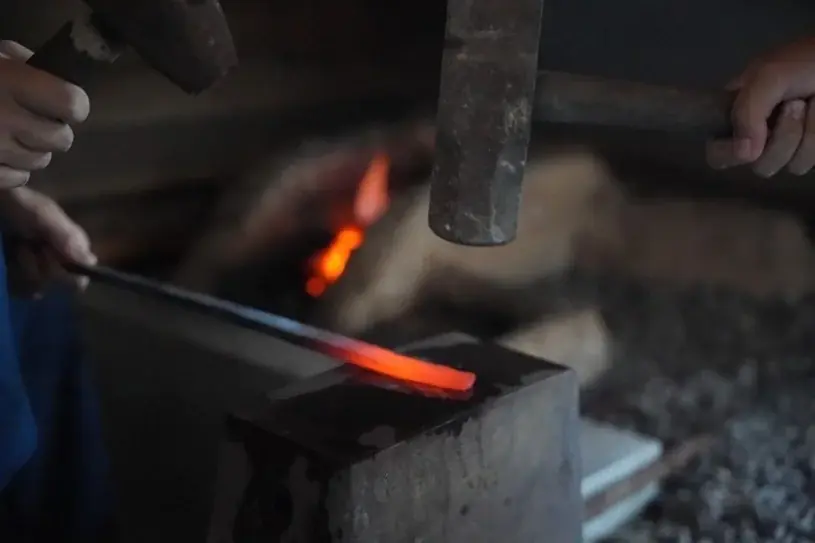 生産は関市の包丁ブランドNiNJAとの協業で行われ、伝統技術にデザインの要素を加えることをコンセプトとするNiNJAの職人が工程の随所に関わっています。素材選定から熱処理、刃付けまで、職人の手による工程が品質を支えます。