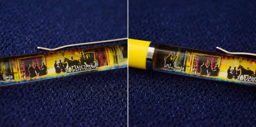 作品中央に描かれる、カフェテラスの奥から走ってくる馬車をモチーフにしたフローティングペンです。ボールペン内部のフローティング仕様により、ペンを動かすと馬車のイラストが動く構造となっています。イラストの中には、作品を描くファン・ゴッホ自身の姿も描写されています。