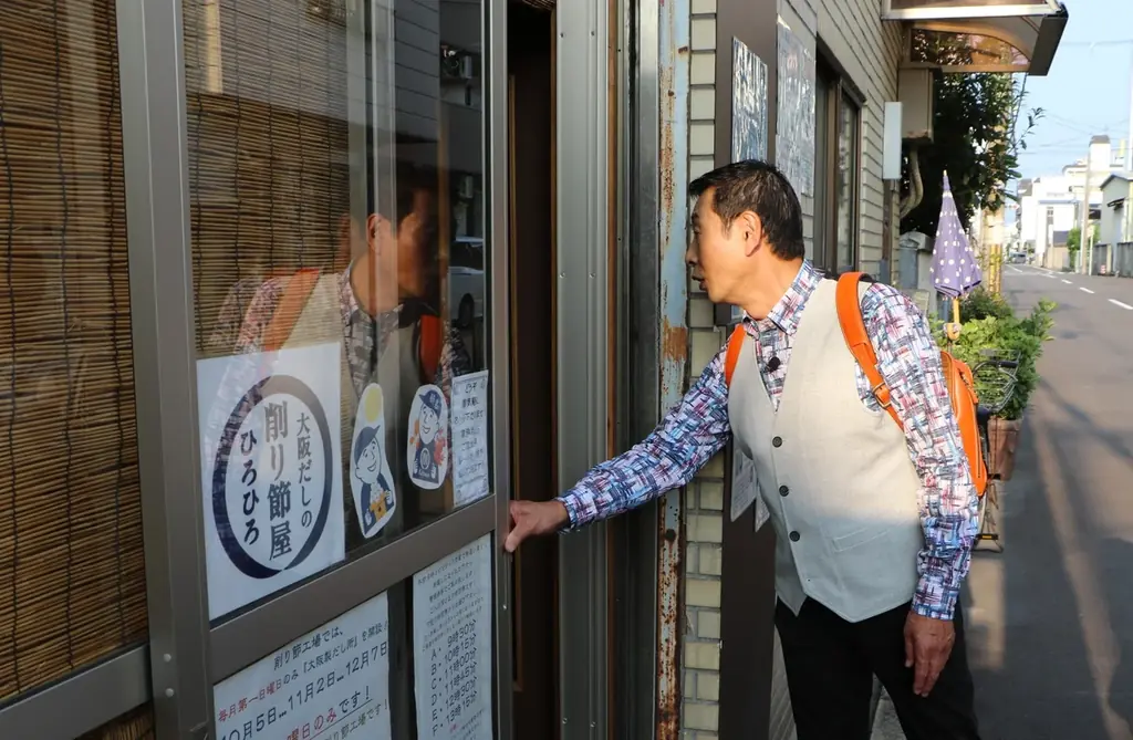 また「大阪だしの削り節加工場ひろひろ」では業務用から家庭用までの削り節を扱い、オーダーメードの削り節が作れること、そして「うるめ・さば」の出汁を試飲する場面がありました。加工場長の名前や資格についても独特のエピソードが紹介されました。