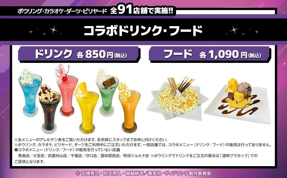 コラボメニュー 全国のボウリングとカラオケ、91店舗にて販売(注文で限定ノベルティを配布)
