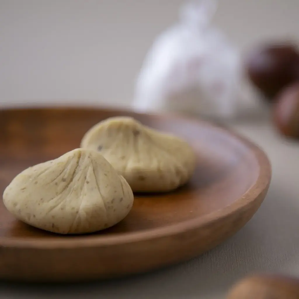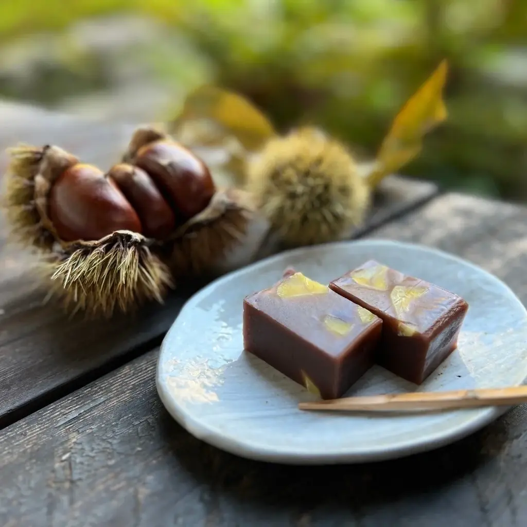 - 季節限定の和菓子。栗本来の風味を生かした素朴な甘さと食感が楽しめます。