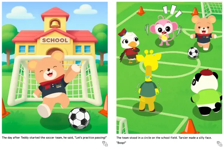 今回追加された新教材は「キッズ – 絵本のえいご」上級編です。ネイティブキャンプの既存キャラクターを絵本形式で展開し、かわいいテディたちの物語を通して英語に親しめる構成になっています。教材は単なる読み聞かせにとどまらず、推理や感想を述べるといったディスカッション要素を盛り込み、アウトプット力の強化を意図しています。