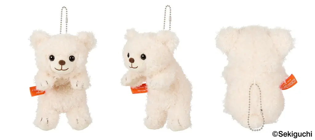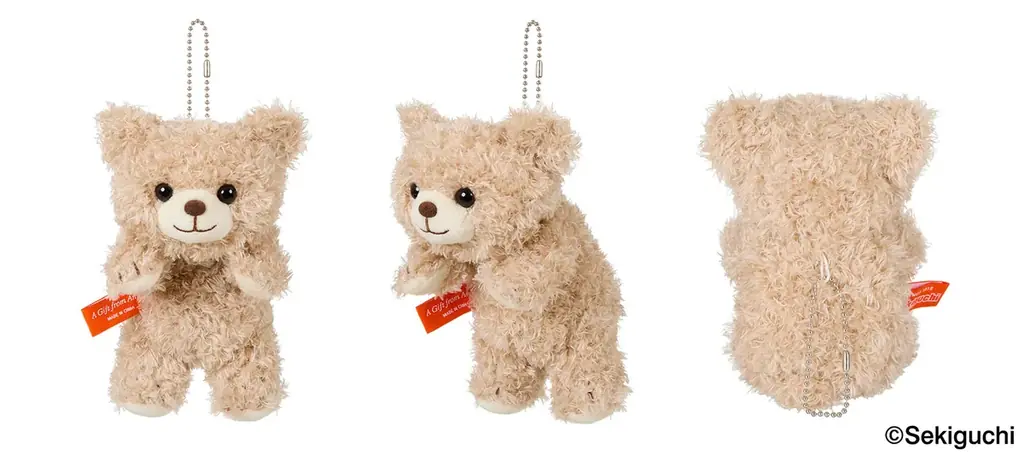 今回の再販では、従来のぬいぐるみ本体に加えて、持ち運びしやすい「マスコットキーチェーン」4色が新たに展開されます。マスコットはぬいぐるみと色味を合わせたライトブラウンのほか、ベージュ、グレー、ホワイト(セキグチ公式オンラインショップ限定)の全4色です。