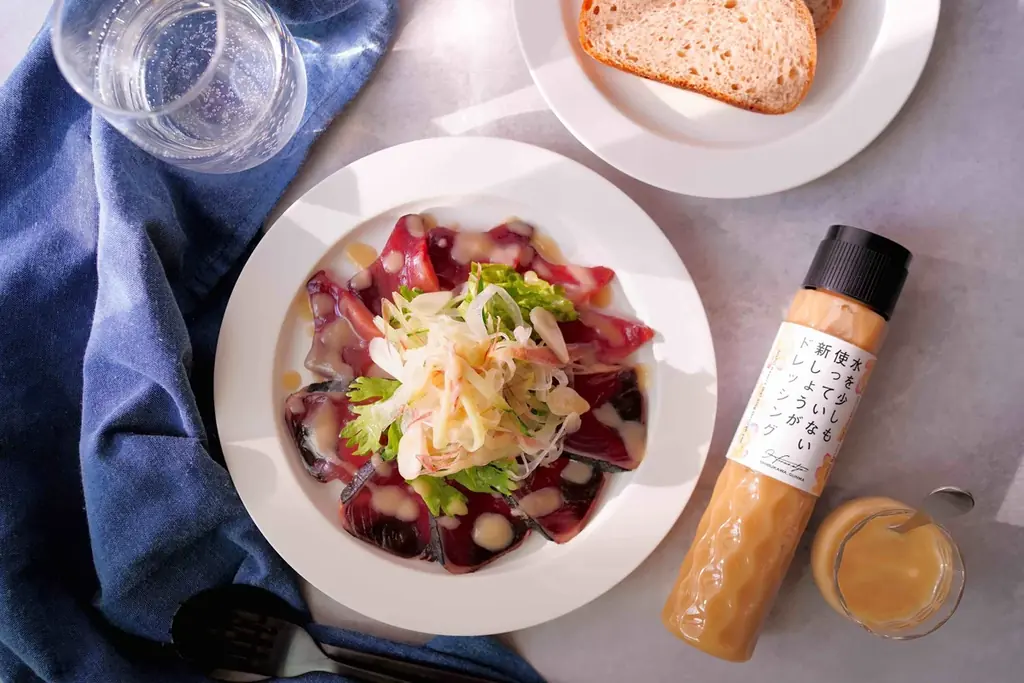 - サラダ、冷やしうどん、冷しゃぶ、焼き魚、焼き茄子、鰹のたたき、ローストビーフ、鍋や素麺の味変、醤油・出汁・めんつゆとの相性も良い万能ドレッシングです。