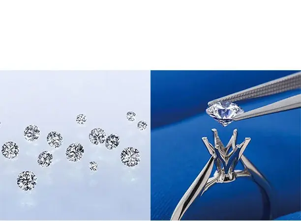 品質面では世界各地の研磨業社から選定したダイヤモンドを自社で一貫して仕入れ、リカット・リユースのダイヤモンドは取り扱わない方針をとっています。常時18,000ピース以上のダイヤモンドと700種類以上のリングデザインを用意し、鑑定書だけに頼らない「輝き」評価を重視した選定を行っています。