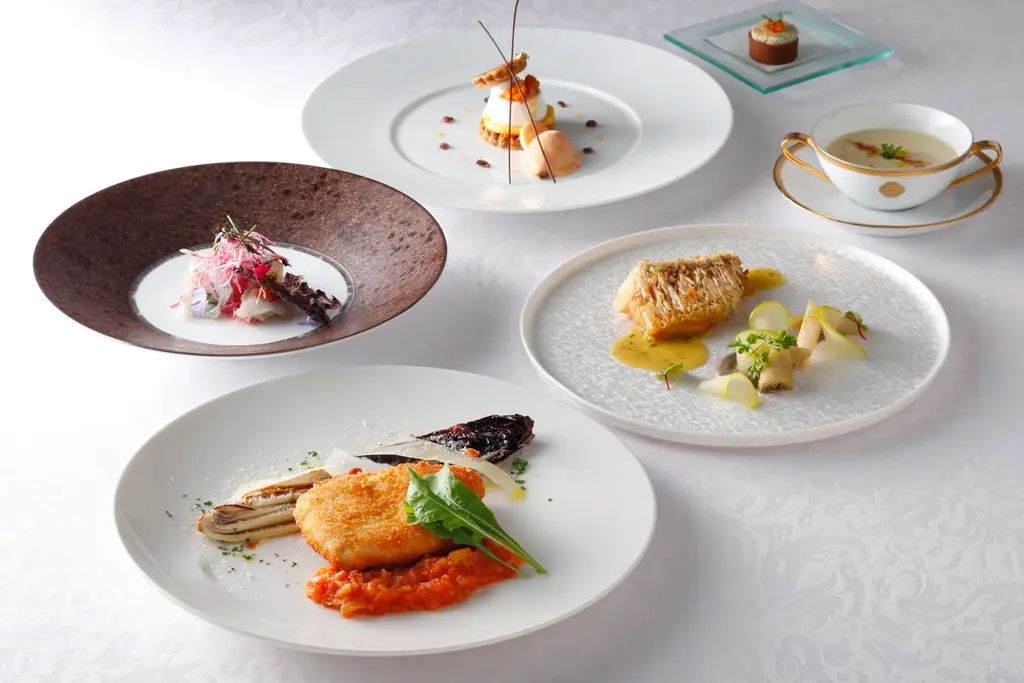 この期間限定メニューでは、北陸・福井県をはじめとする産地から届く旬の食材を中心に据え、海の幸・山の幸を取り合わせた構成が特徴です。越前柿やとみつ金時、敦賀ふぐや若狭牛など、各地の素材が使われています。