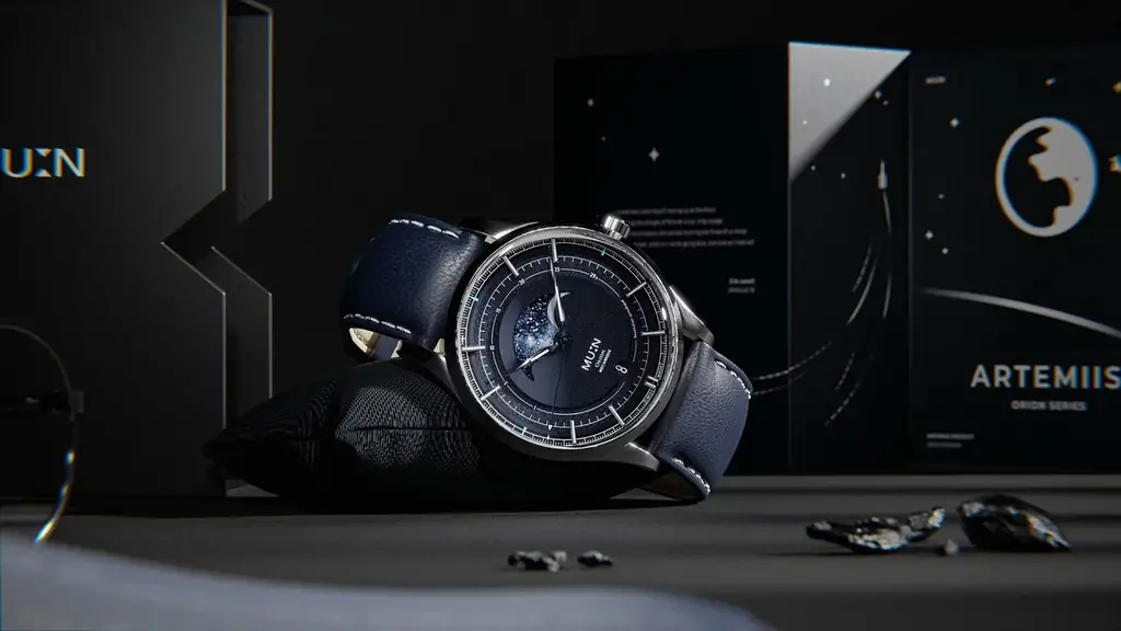 プレスリリースはMU:Nの代表的な2つのコレクションを詳述しています。ひとつがブランドの原点を表すORIGIN(オリジン)、もうひとつが技術革新と宇宙への敬意を示すORION(オリオン)です。それぞれムーンフェイズ表現のアプローチが異なり、素材やムーブメント、仕上げに明確な差別化が施されています。