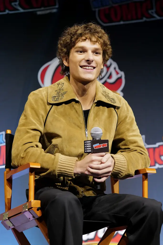メイソン・テムズ、ニューヨーク・コミコンでマックイーンのスエードボンバージャケットを披露