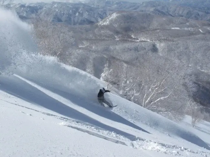 木落し Bowlは、非圧雪の自然地形を活かしたコースであり、パウダー滑走や沢地形でのサーフライドなど多様な滑走スタイルを想定しています。雪の状態によっては浮遊感のあるパウダースノーを長距離にわたり体感できる点が特徴です。