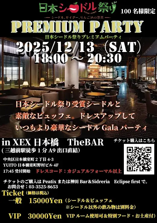 プレミアムパーティー 2025年12月13日(土)18:00〜20:30/XEX日本橋 THE BAR(チケット:peatix)
